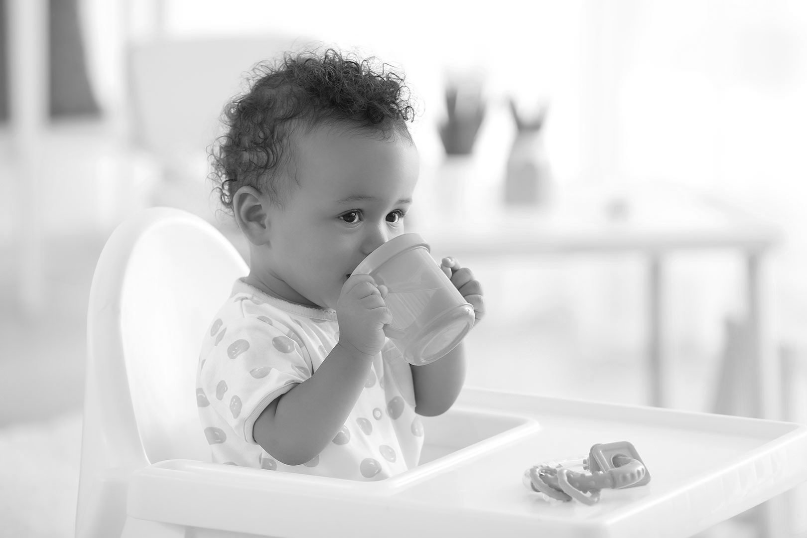 Water, breast milk, cow’s milk based infant formula or other infant formula can be offered from a cup from around 8 months of age. Other family milk drinks, such as regular cow’s milk, should not be your baby’s main drink until after one year of age.