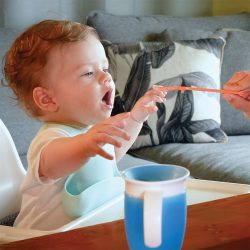 Your baby shows an interest in food. For example, they look at or reach out for your food.
